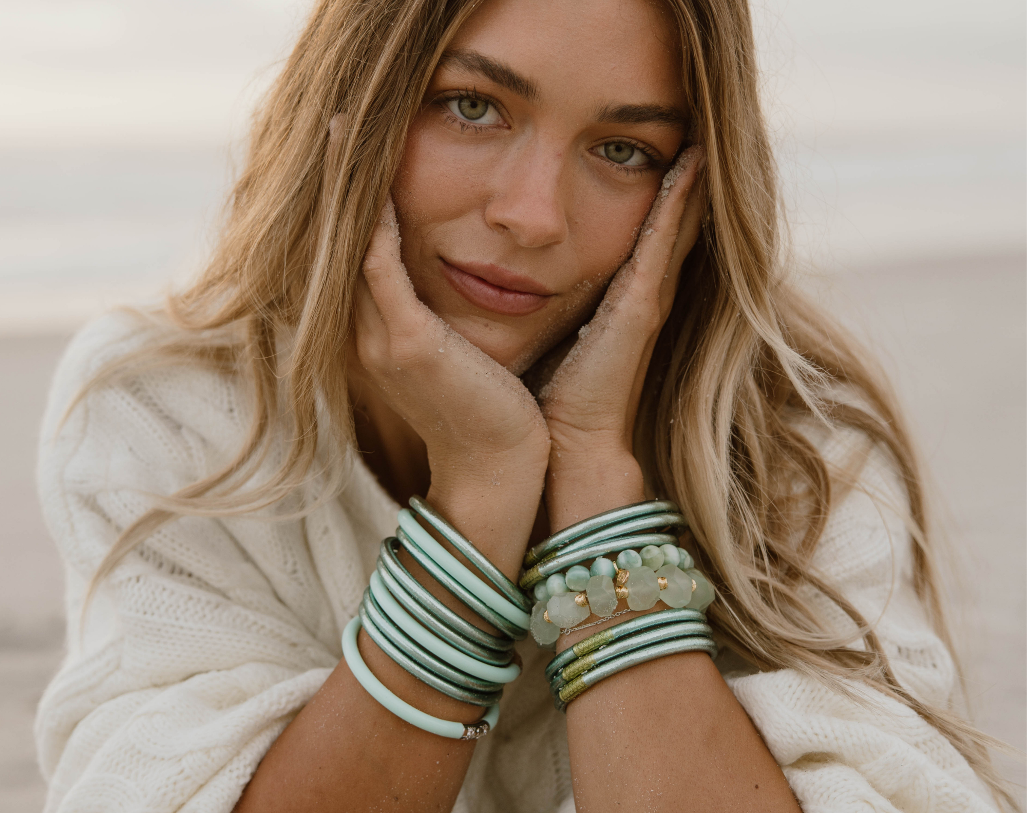 Our Seaglass Collection — a meditation in the softest blues and greens, hues kissed by the ocean herself.