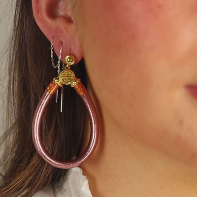 Esculpidos en una silueta atemporal de lágrima y disponibles en tonos radiantes, estos Pendientes Todo Clima en Oro Rosado son livianos, silenciosos e impermeables—diseñados para acompañarte desde la meditación matutina hasta las celebraciones nocturnas. Una luminosa cuenta con el logo chapada en oro corona cada pieza, reflejando el acabado característico de nuestras queridas pulseras.