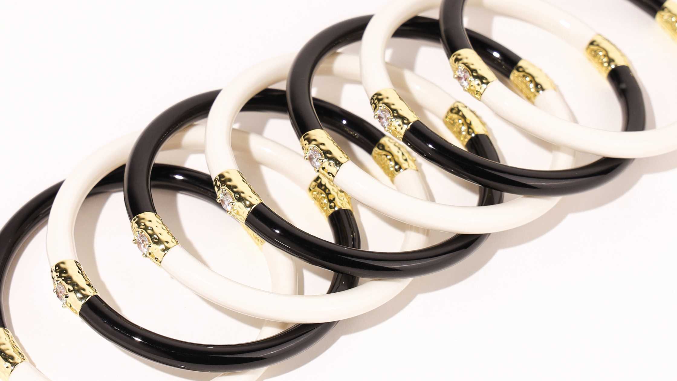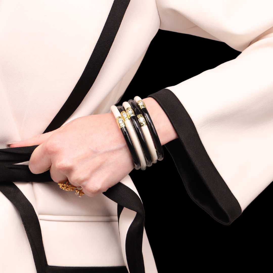 Ogni Black/Ivory Yin and Yang All Weather Bangle® è una testimonianza di maestria e cura, meticolosamente realizzato a mano da un team di oltre 20 artigiani. Ogni bracciale è un unico lavoro d'amore, che riflette la dedizione dei suoi creatori.