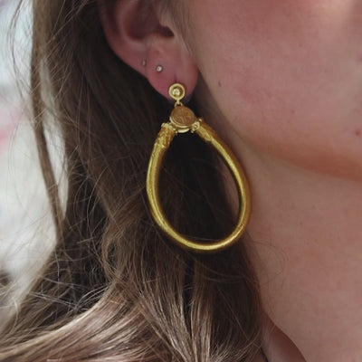 Each earring is crowned with our Logo-set bead cast in gold-plated brass, mirroring the finish of our All Weather Bangles.
