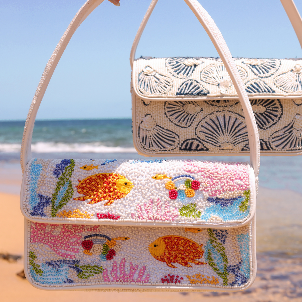 Say hello to your new summer essential. The Ocean Collection expands with three enchanting hand-beaded handbags, each exclusively crafted in India.