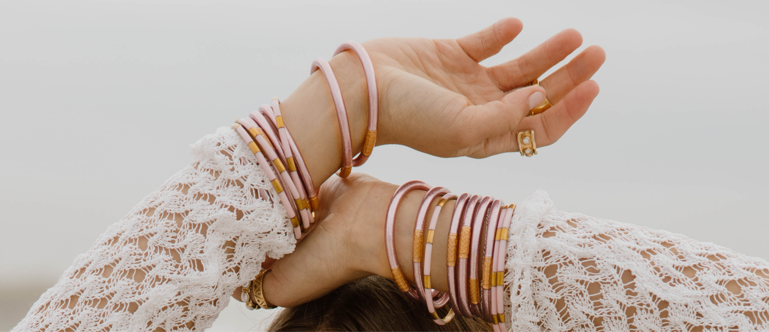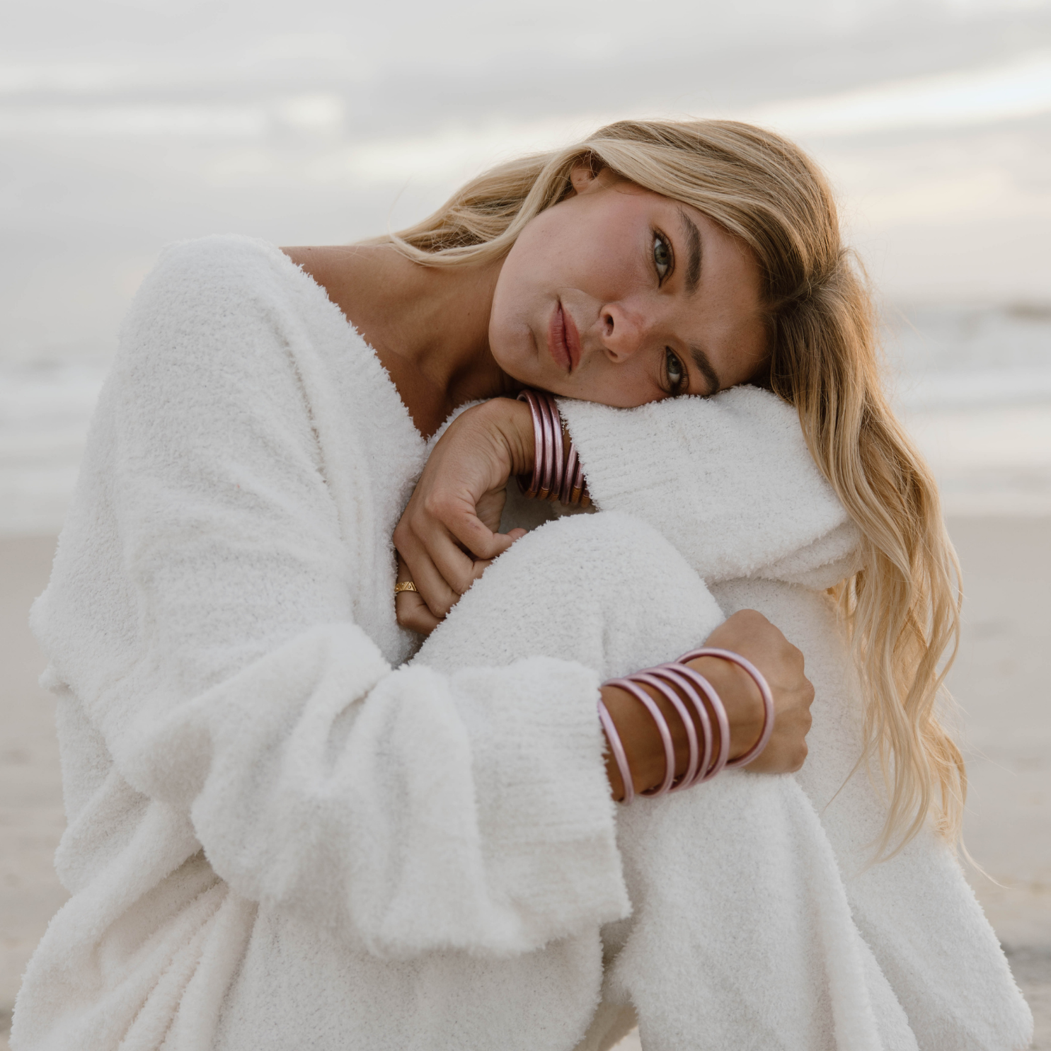 BuDhaGirl introduces Ice Rose to our All-Weather Bangle® collection: a cool pink that blends the crispness of ice with the beauty of rose. Ice Rose is delicate, luminous, and quietly transformative—the hue of morning light dancing on sea glass kissed by soft waves. Ice Rose is not merely a color; it is an invitation to see beauty in the gentlest of moments.
