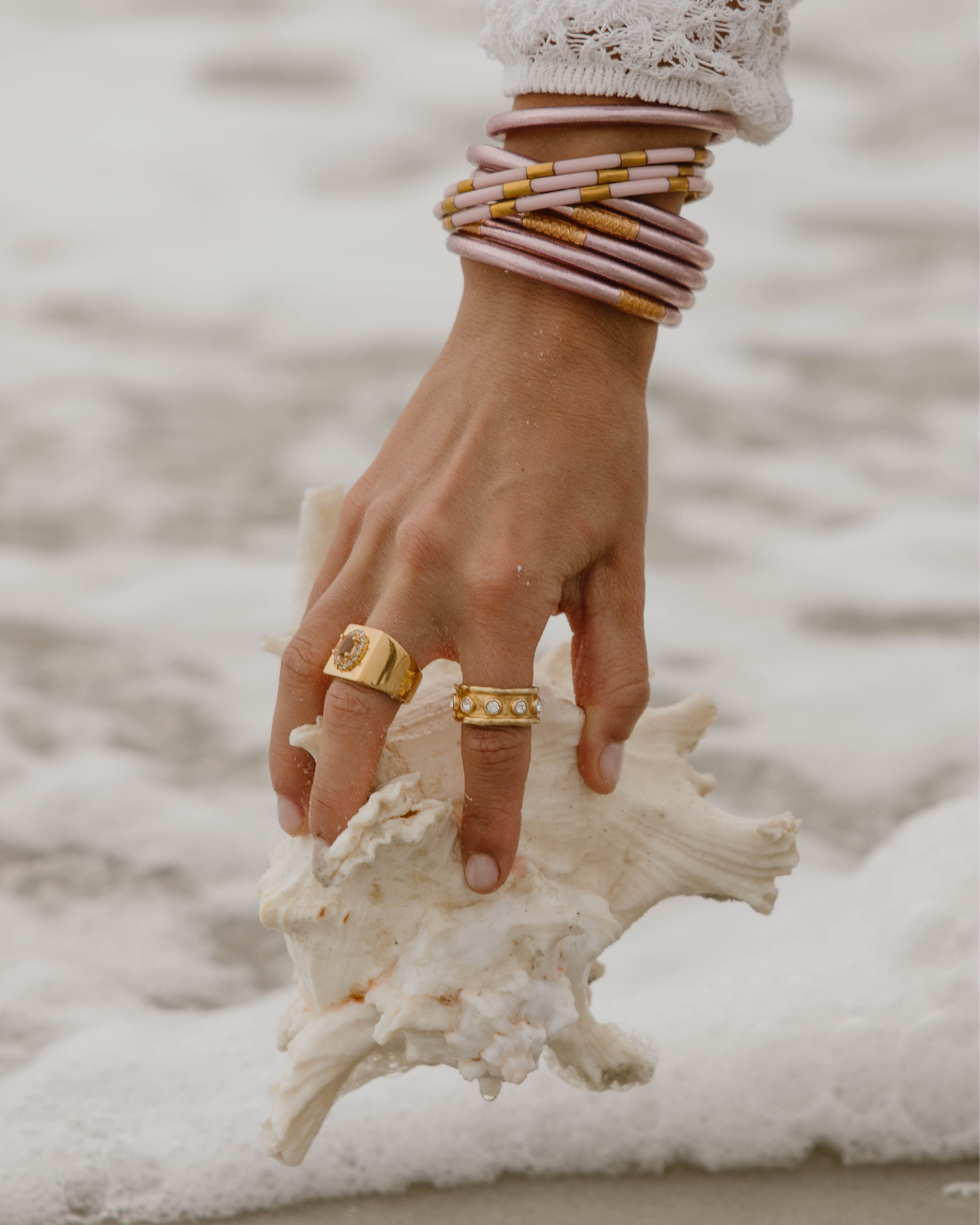 BuDhaGirl presenta Ice Rose en nuestra colección All-Weather Bangle®: un rosa frío que combina la frescura del hielo con la belleza de la rosa. Ice Rose es delicado, luminoso y silenciosamente transformador: el tono de la luz matutina que danza sobre el vidrio marino besado por suaves olas. Ice Rose no es solo un color; es una invitación a ver la belleza en los momentos más sutiles.