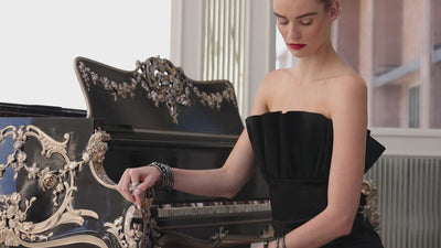 Mindful Glamour Ritual: Pause. Breathe. Slip on your Black & Silver Koi AWB® with each bangle, set an intention to find balance in contrast—brilliance in shadow.